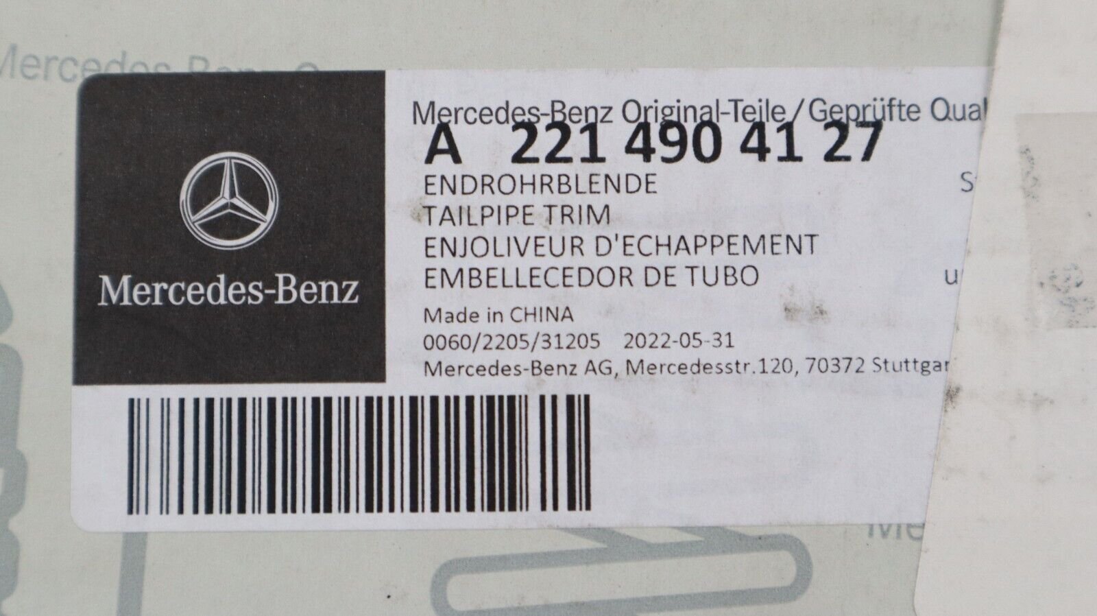 New! 2018-2020 Mercedes-Benz S450 SL550 Tail Pipe Cover A2214904127 OEM